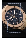 Hublot Big Bang Carbon Dial Pink Gold Case Swiss Replica Watch : 1:1 Mirror Replica