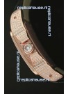 Case: 18K Rose Gold Plated Brushed Stainless Steel Diamond Crested Case