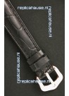 Strap: Black Leather Strap with Insignia Tang Buckle
