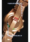 18K 10.0 Microns Thick Everose Gold Plating on 904L Solid Stainless Case with Rolex Markings and Engravings like the Authentic. High Quality Swiss Cut Diamonds on Watch Casing