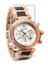 Strap: High Quality Swiss Diamonds Bordering on 18K Pink Gold Plating Stap with Rubber inlay