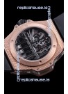 Genuine Rubber Clad strap with Pink Gold Plated Clasps complete with Hublot Markings and Engravings.