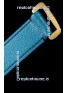Genuine Blue Leather Strap with Yellow Gold Coated Tuck Buckle