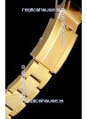 18K Yellow Gold Plating on 904L Steel with New style Flip-Lock Perfectly Replicated Clasp Complete with Rolex Markings and Engravings as per the Genuine