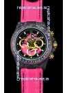 Black/Pink Dial with SuperLumed Hour Markers. Three Functional Sub dials working in conjunction to the stopwatch feature as per the originals.