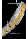 18K Yellow Gold Plating on 904L Steel Two Tone Strap with New style Flip-Lock Perfectly Replicated Clasp Complete with Rolex Markings and Engravings as per the Genuine