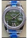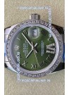 Green Dial with Roman Hour Markers. Swiss Cut Diamonds Bezel