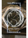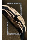 18K Rose Gold Plating with Diamonds Encrusted on 904L Stainless Steel Casing in Geometric Form, one of the the most advanced watch casing production technique on a Replica watch to give it a 1:1 mirror Look.