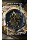 18K Rose Gold Plating with Diamonds Encrusted on 904L Stainless Steel Casing in Geometric Form, one of the the most advanced watch casing production technique on a Replica watch to give it a 1:1 mirror Look.