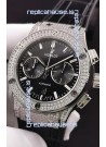 Hublot Classic Fusion Chronograph Steel Diamonds Casing Black Dial 1:1 Mirror Replica Watch