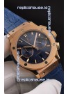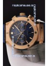 Hublot Classic Fusion Chronograph Rose Gold Casing Blue Dial 1:1 Mirror Replica Watch