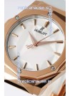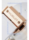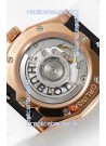 Genuine Rubber Strap with Rose Gold Plating on Steel Folding Clasp complete with Hublot Markings and Engravings.