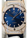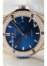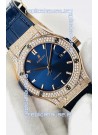 Hublot Classic Fusion Diamonds Rose Gold Steel Blue Dial Swiss Replica Watch 1:1 Mirror Quality