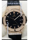 Hublot Classic Fusion Diamonds Rose Gold Steel Black Dial Swiss Replica Watch 1:1 Mirror Quality