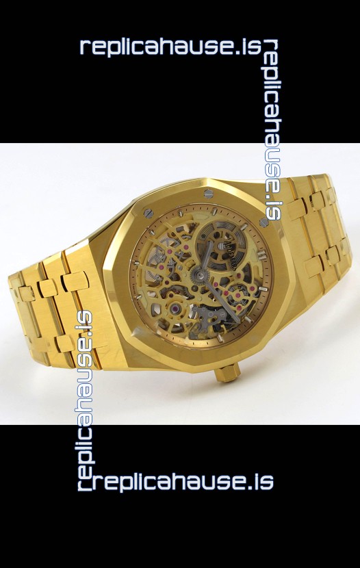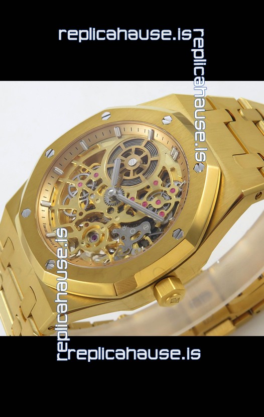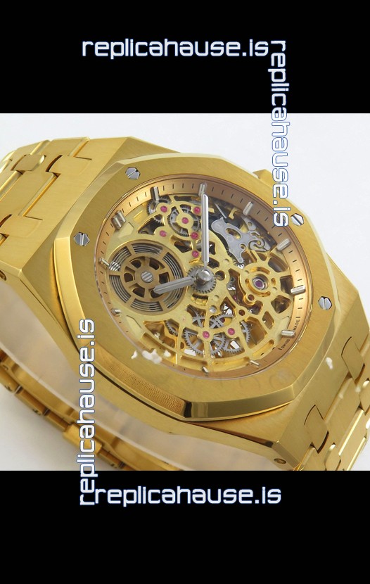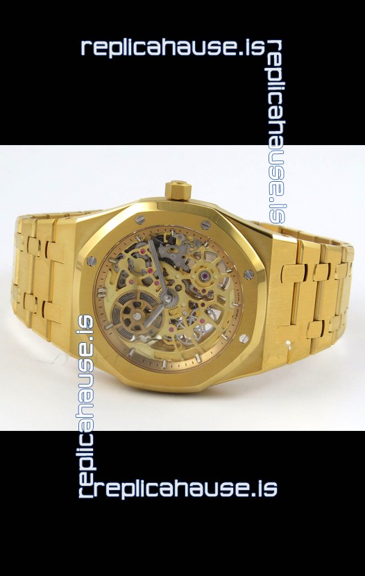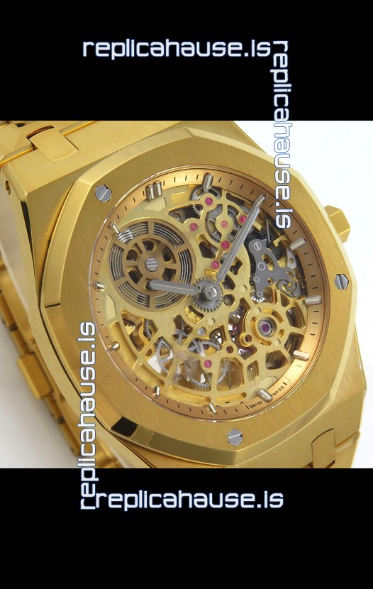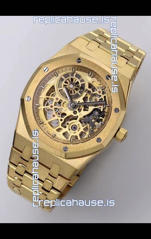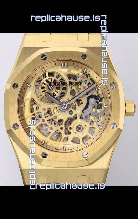 18K Yellow Gold Plating on 904L Stainless Steel Strap linked with Screws complete with AP Markings and Engravings
