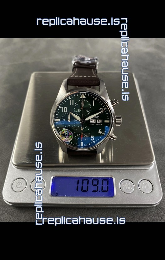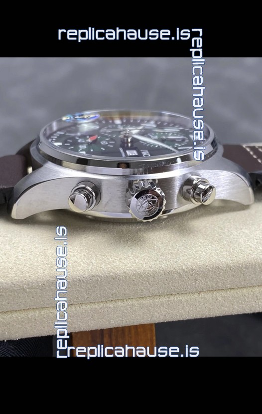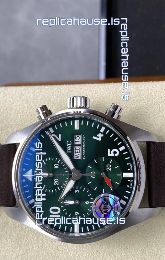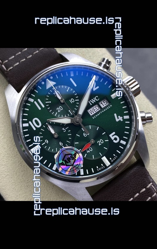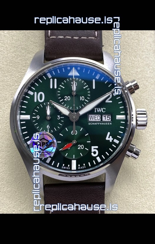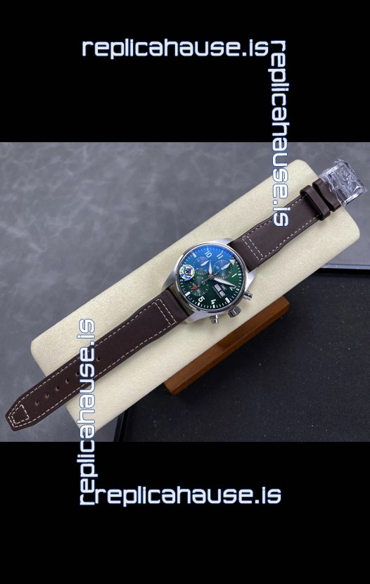 IWC Super Clone Pilot Chronograph Edition Green Dial Leather Swiss Replica Watch