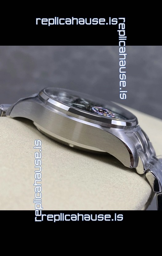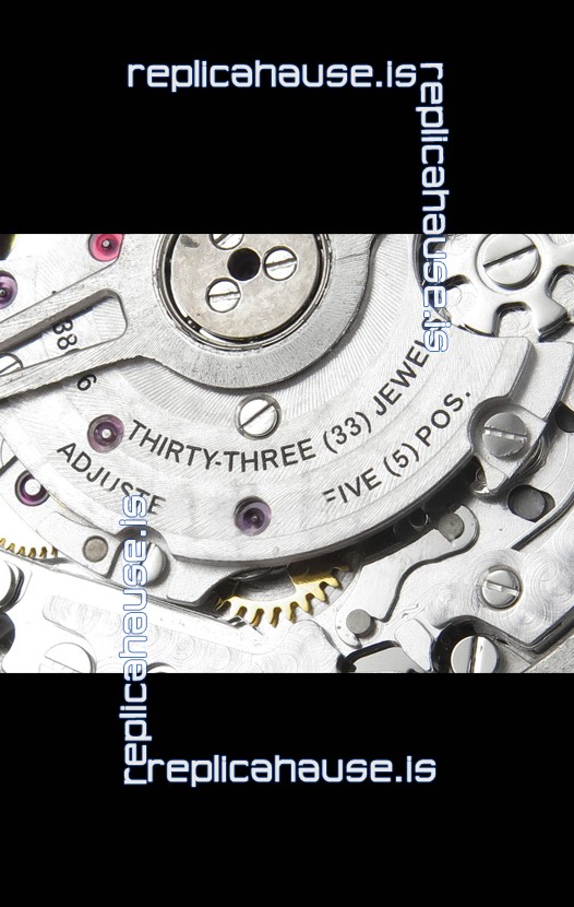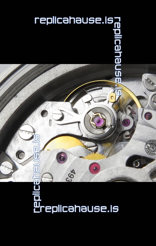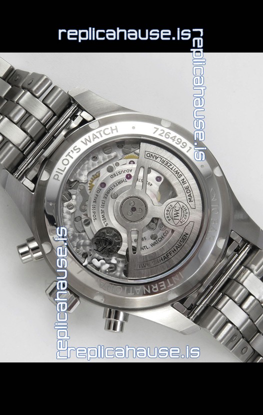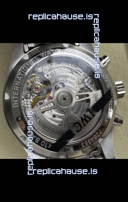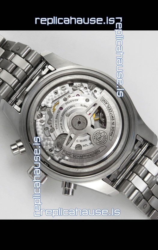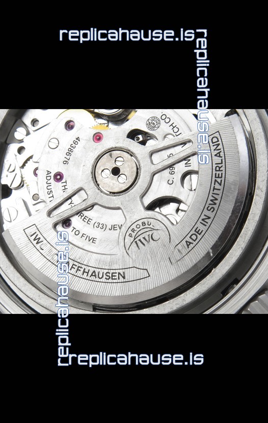 Base 7750 Movement Modified to Resemble the IWC 69385 Movement. Platinum Decodated Plate and Rotors. The Most Identical Machinery setup when compared with the Originals.