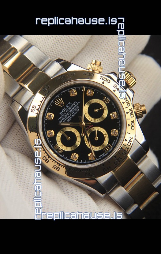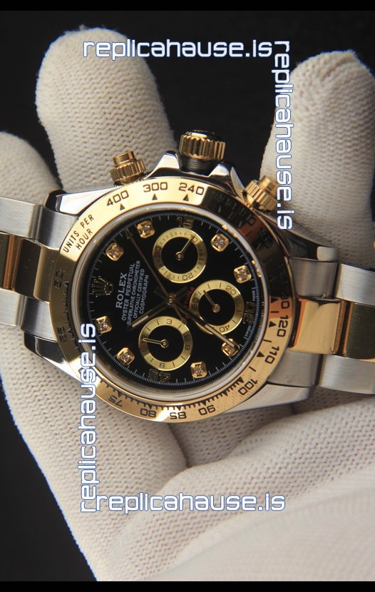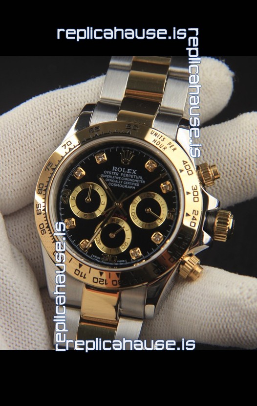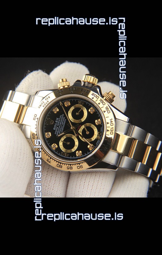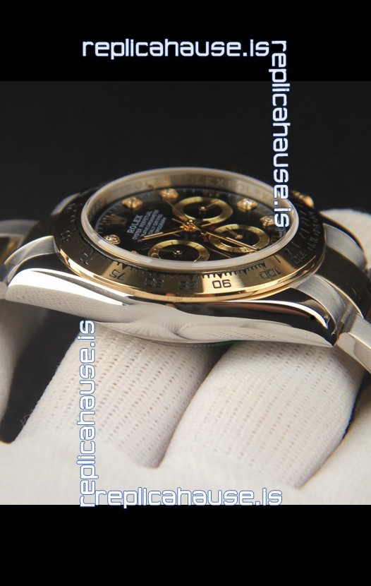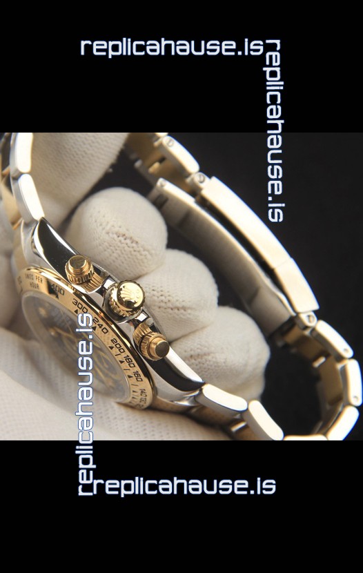 Rolex Daytona Japanese Movement Two Tone Gold Casing Watch in Black Dial