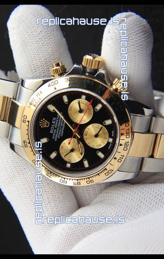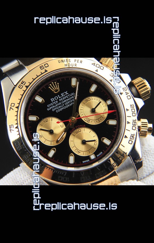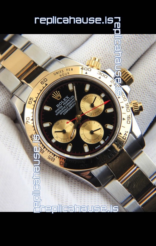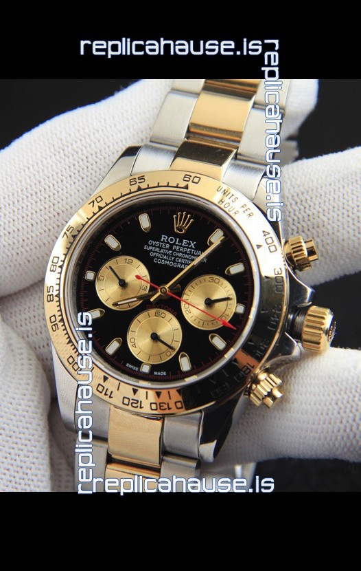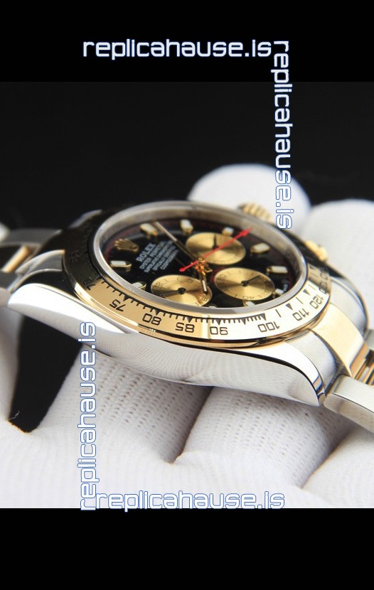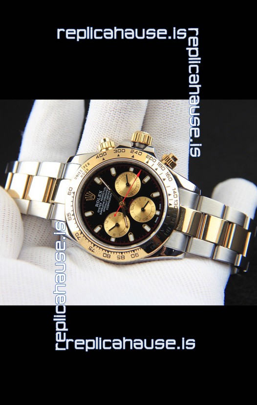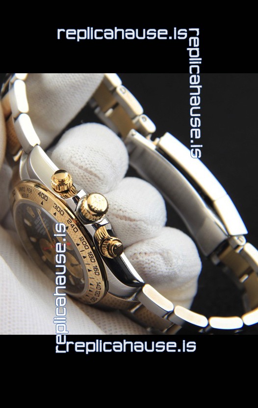 Rolex Daytona Japanese Movement Two Tone Gold Casing Watch in Black Dial