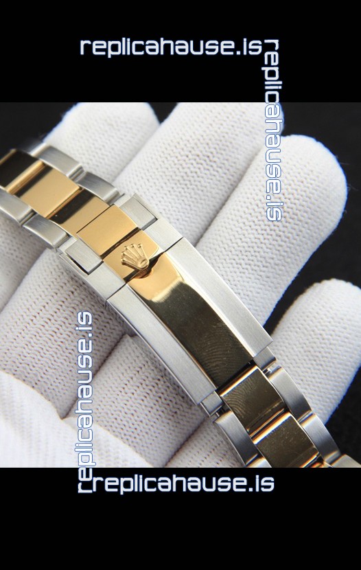 Two Tone 18K Gold Plating on 904L Solid Stainless Steel Case with Rolex Markings and Engravings