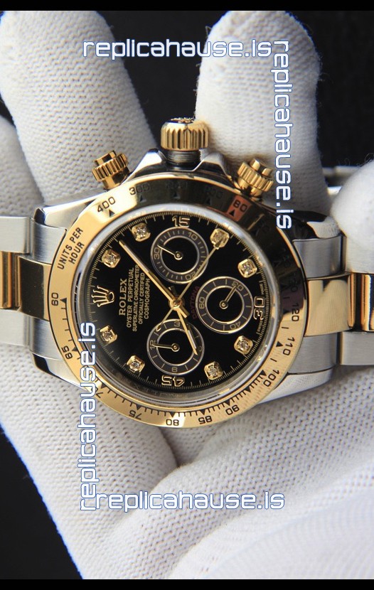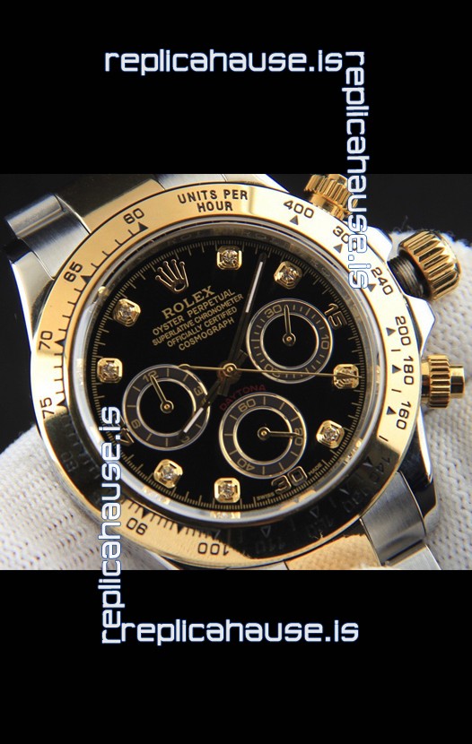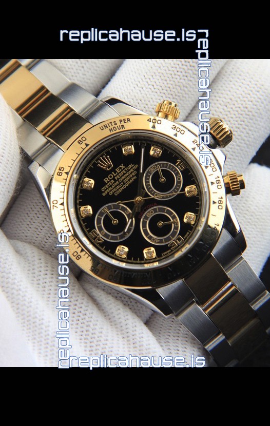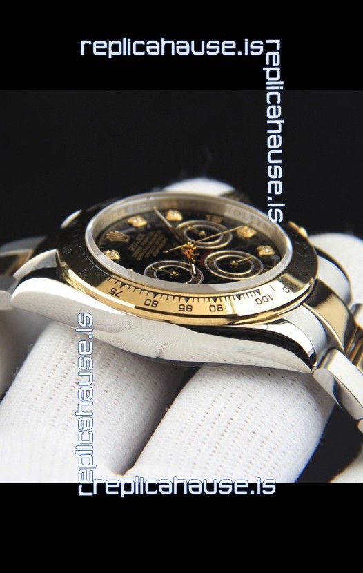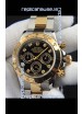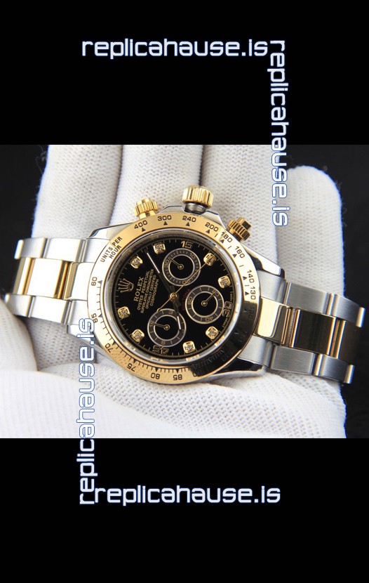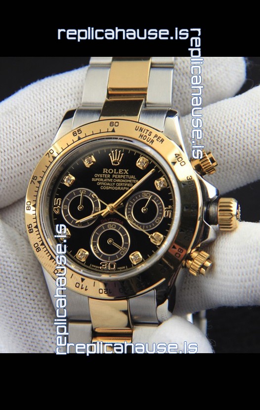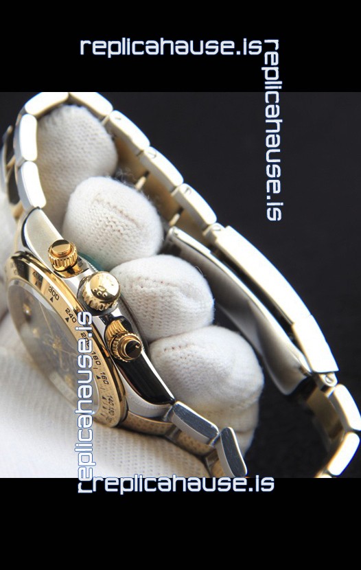 Rolex Daytona Japanese Movement Two Tone Gold Casing Watch in Black Dial