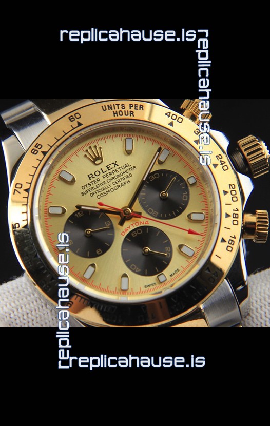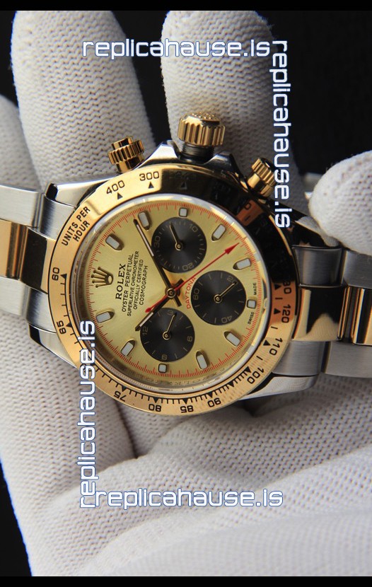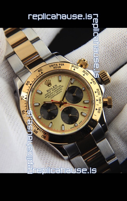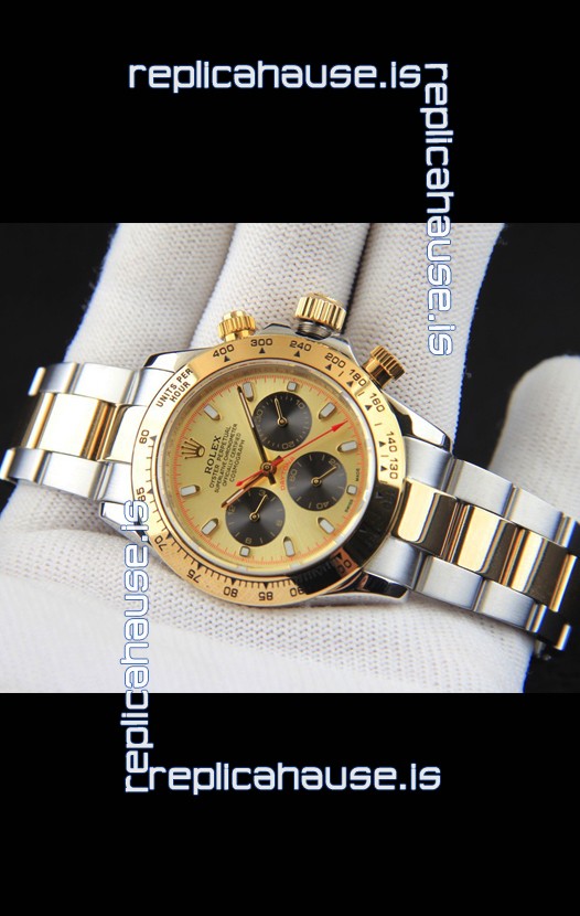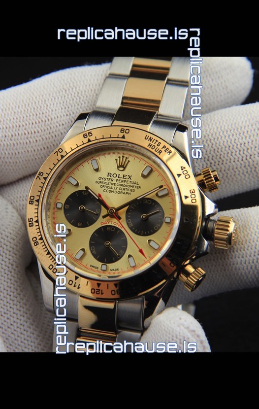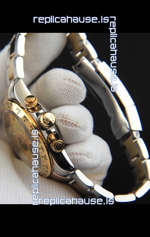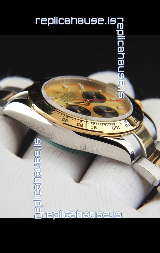 Rolex Daytona Japanese Movement Two Tone Gold Casing Watch in Gold Dial