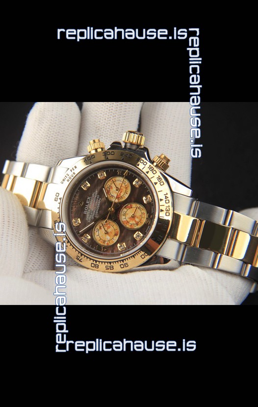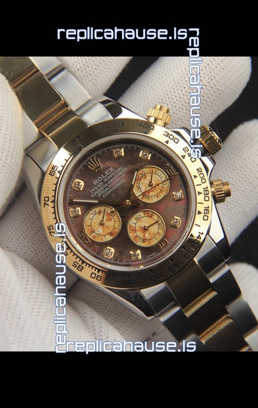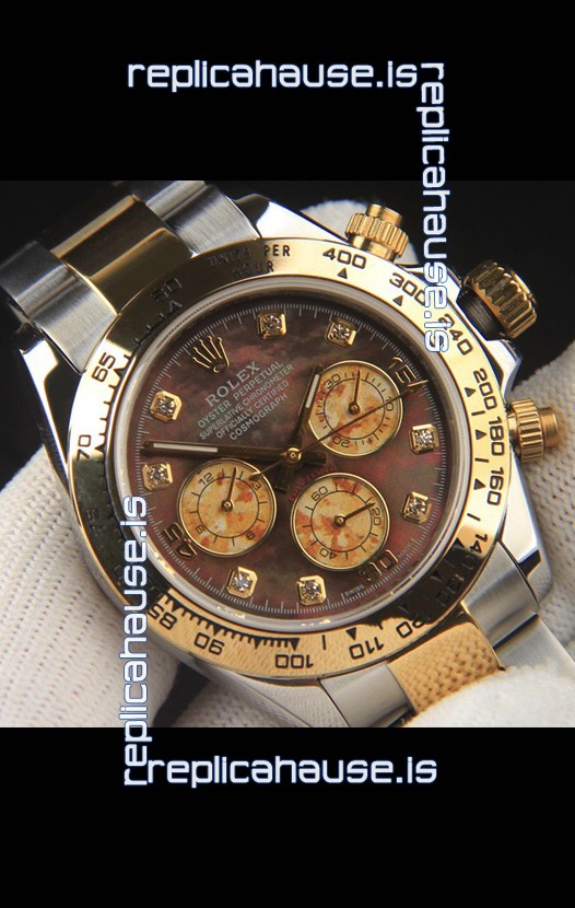 Rolex Daytona Japanese Movement Two Tone Gold Casing Watch in Pearl Dial