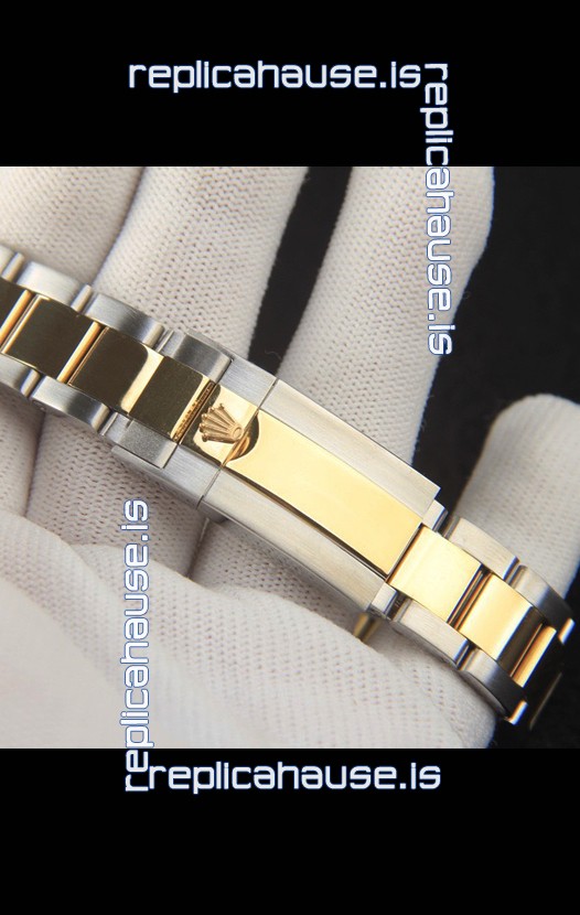 Two Tone 18K Gold Plating on 904L Solid Stainless Steel Case with Rolex Markings and Engravings
