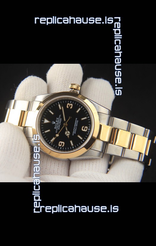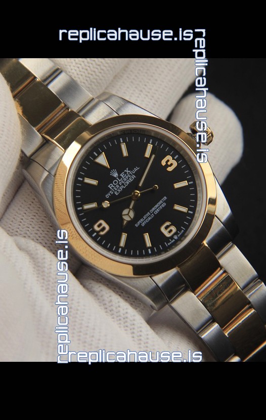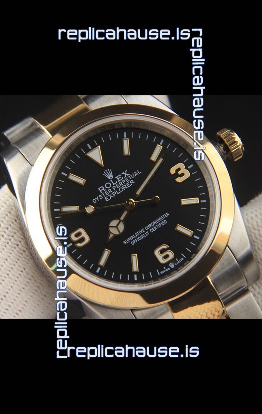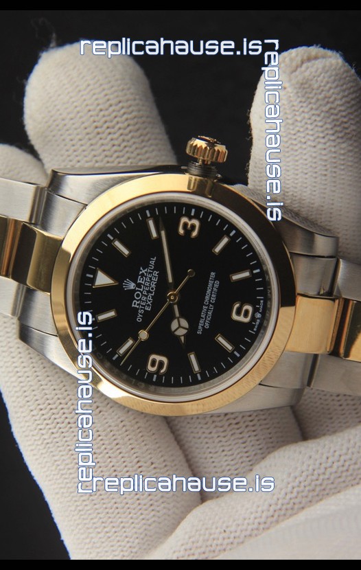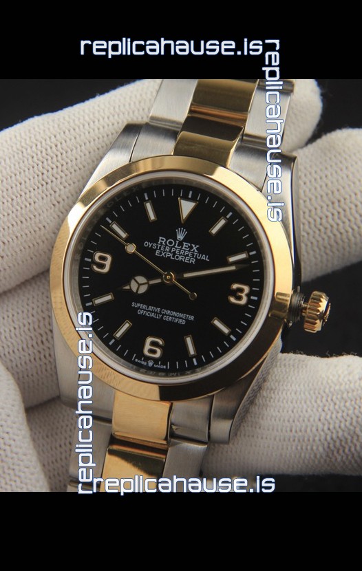 Rolex Explorer I Japanese Movement Replica Watch in Two Tone Black Dial 36MM