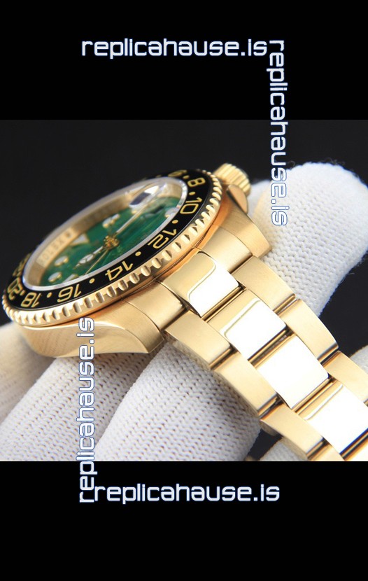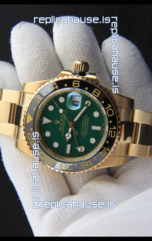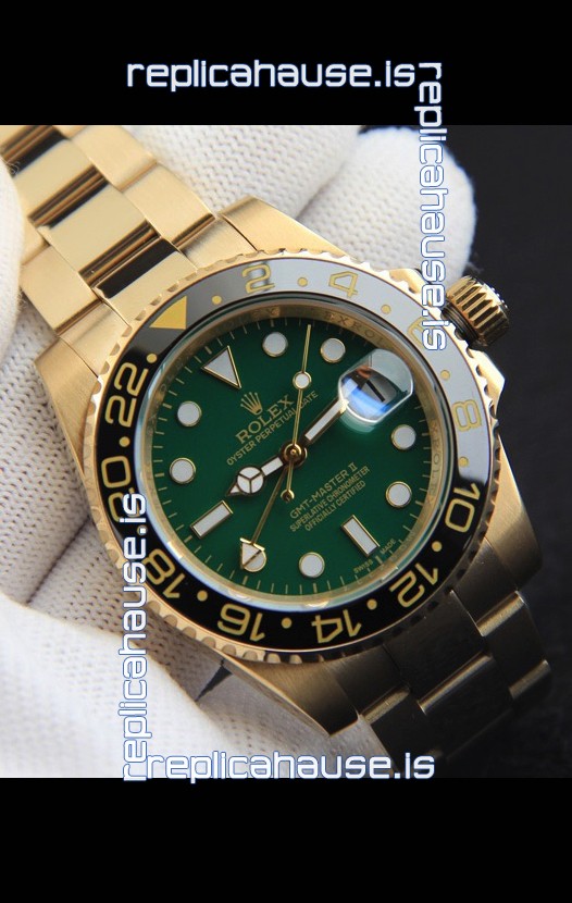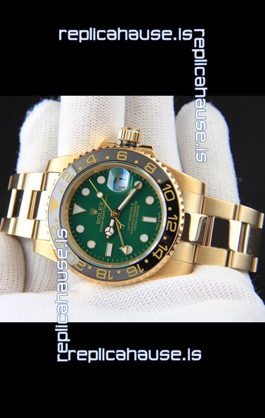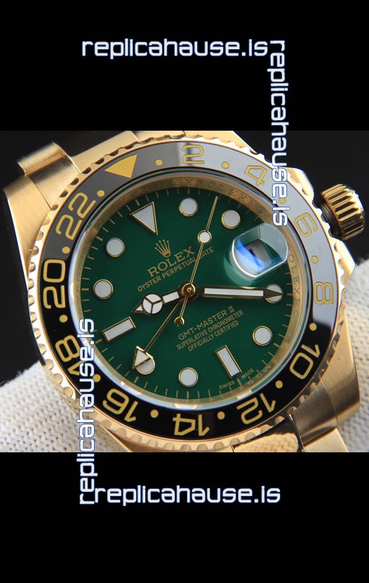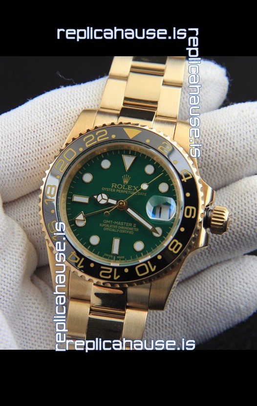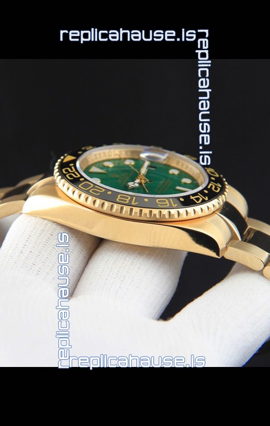 Rolex GMT Masters II Rose Gold Plating Japanese Replica Watch Green Dial
