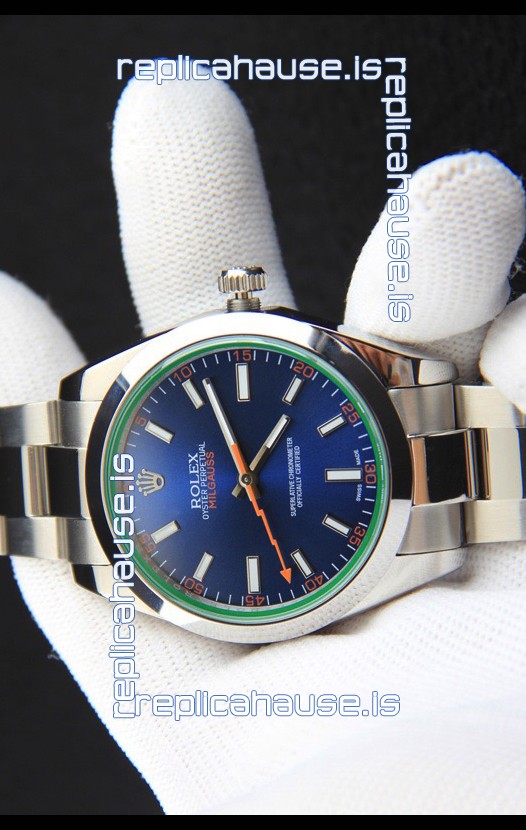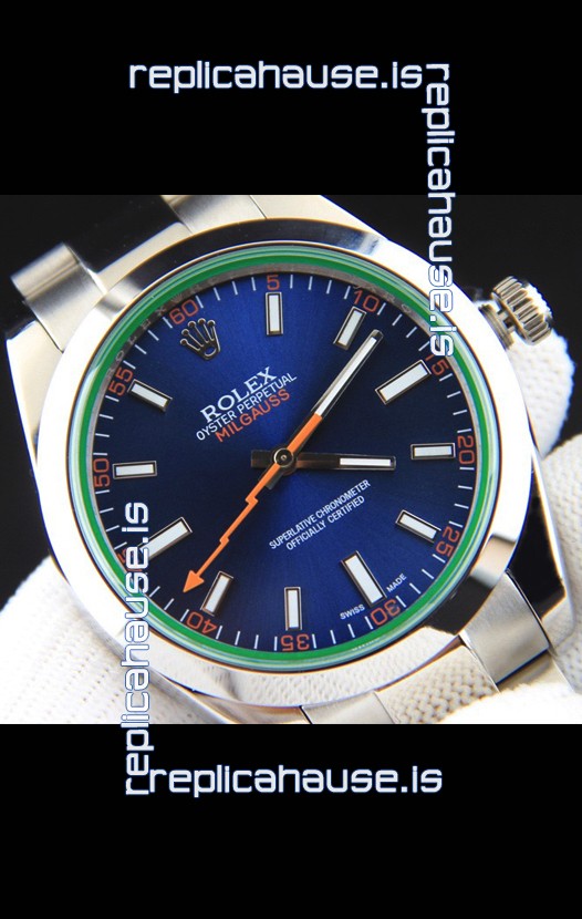 Rolex Milgauss Japanese Movement Replica Watch in Blue Dial