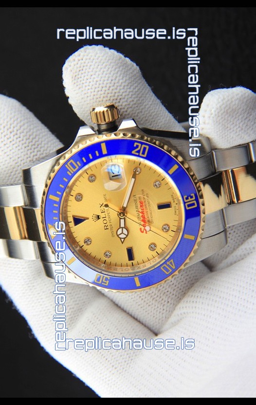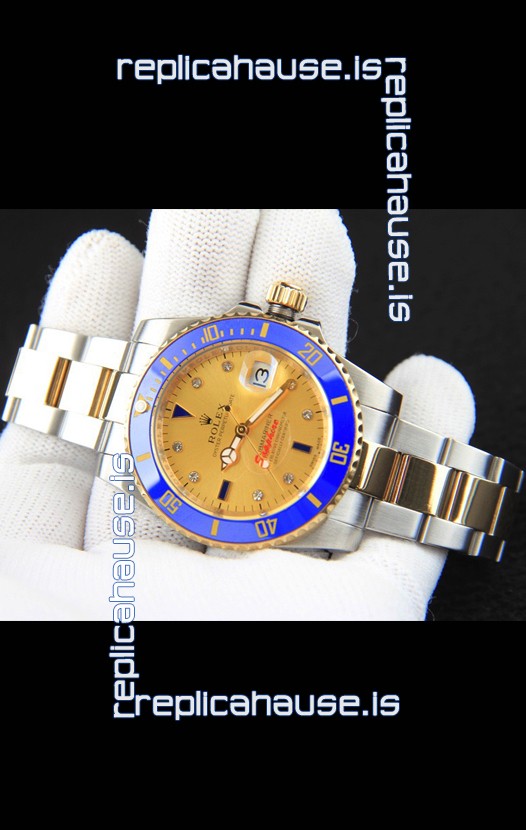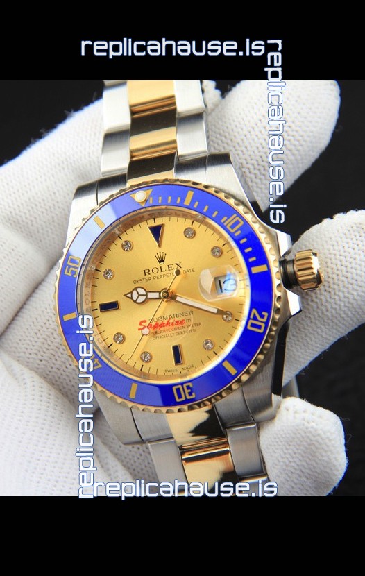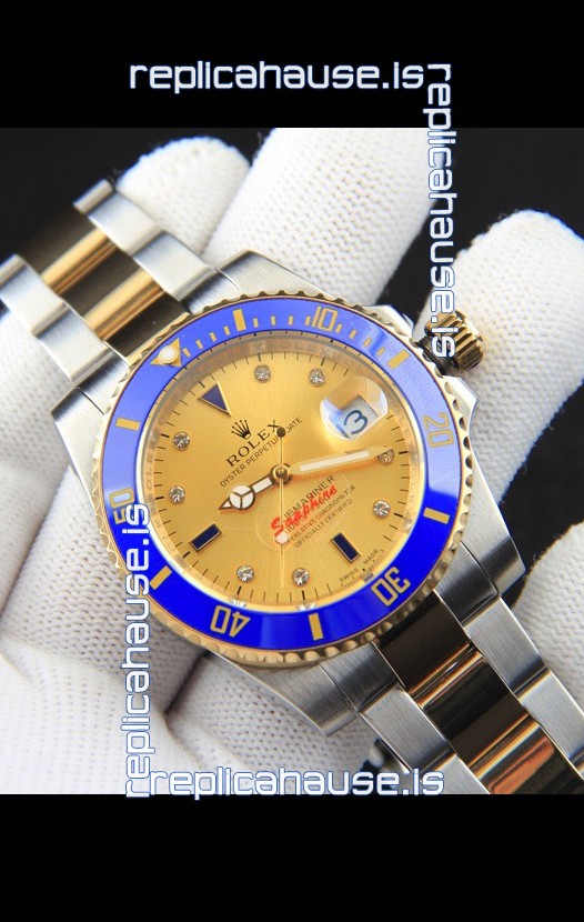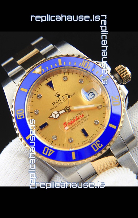 Rolex Submariner Japanese Replica Watch in 2 Tone Yellow Gold Casing Gold Dial