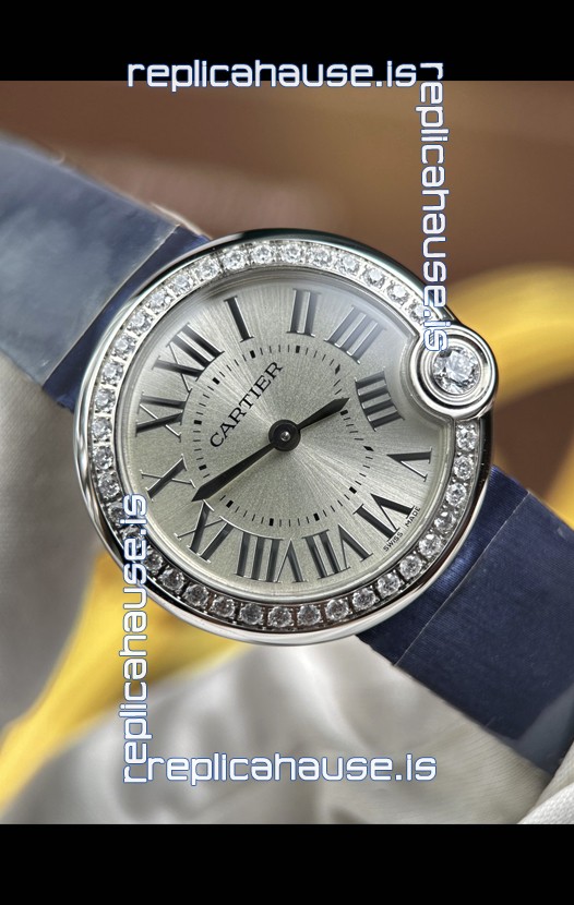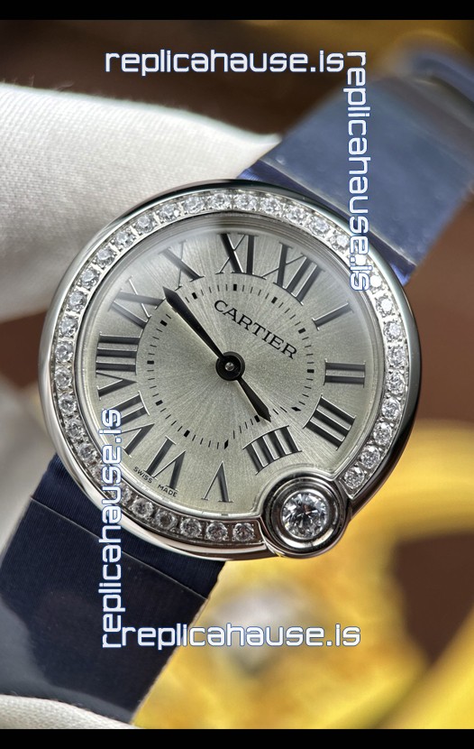 Ballon Blanc De Cartier Swiss Quartz Replica Watch in Steel Casing Fabric Strap
