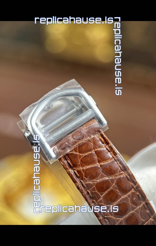 Genuine Leather Strap with Cartier Markings/Engravings and Double Folding Clasp