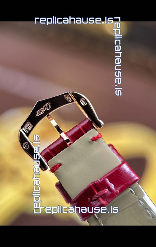 Genuine Leather Strap with Cartier Markings/Engravings and Double Folding Clasp