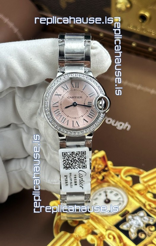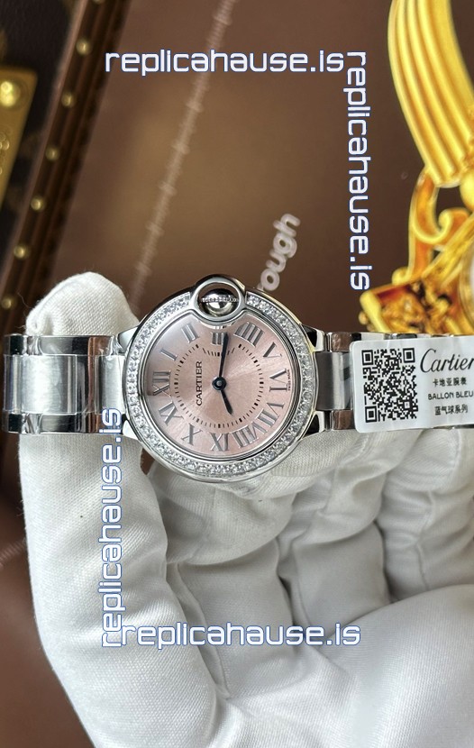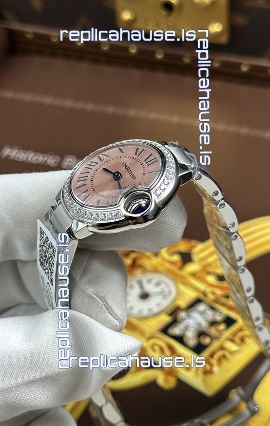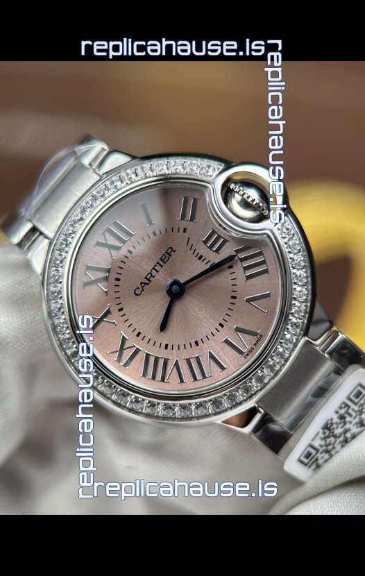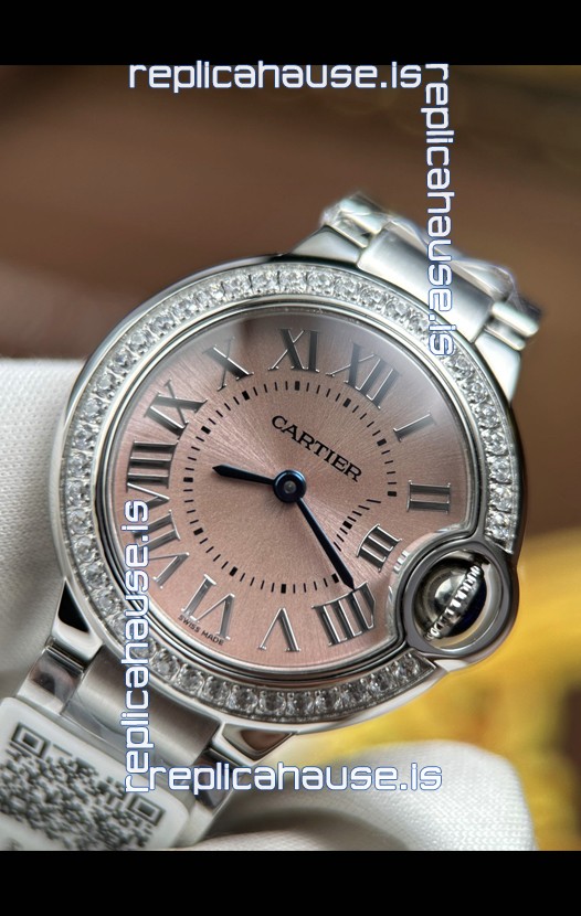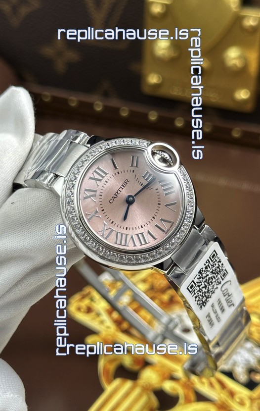 Ballon De Cartier Swiss Quartz 1:1 Mirror Quality 33MM in Steel Pink Dial
