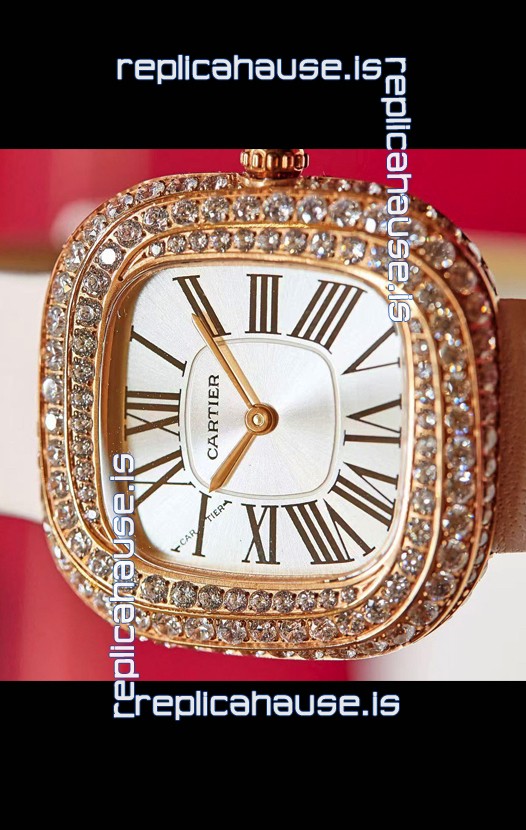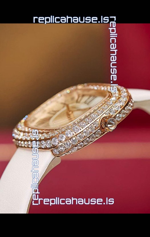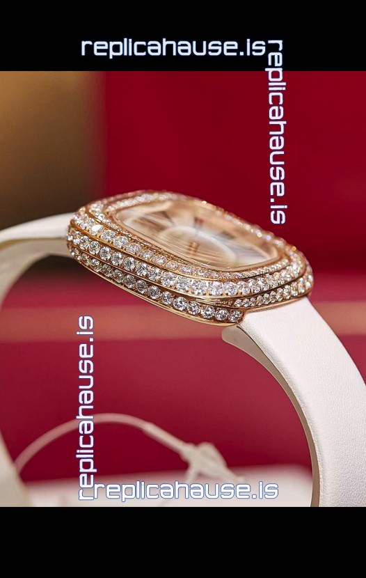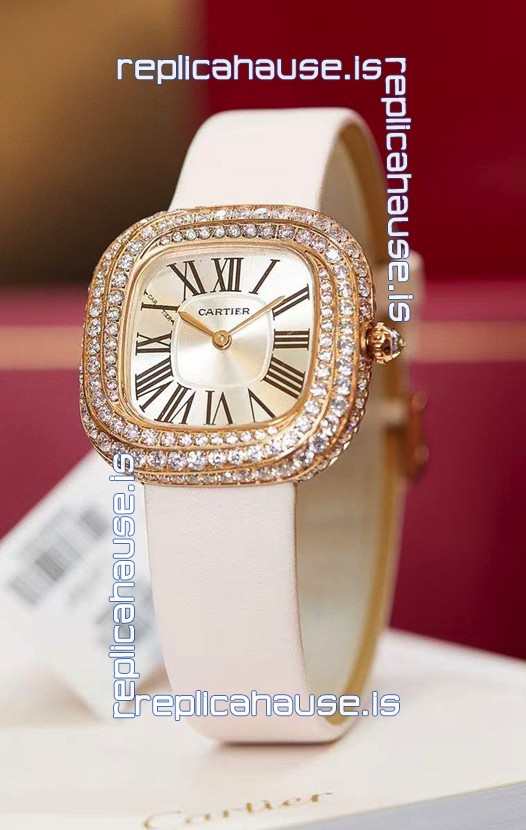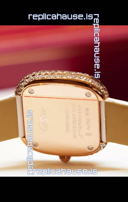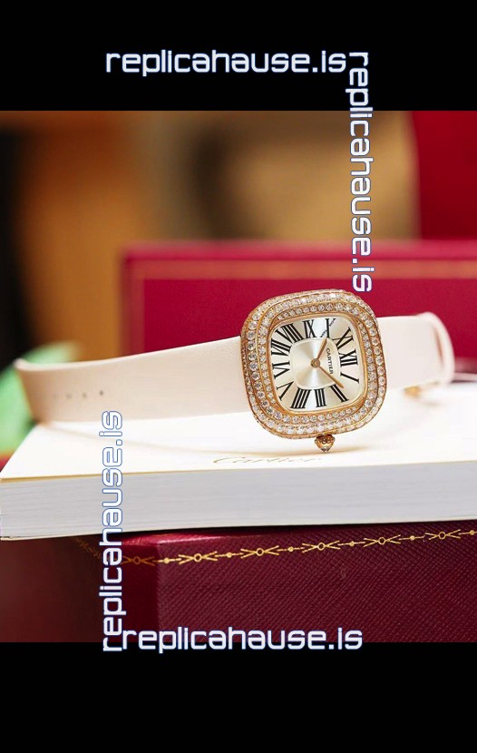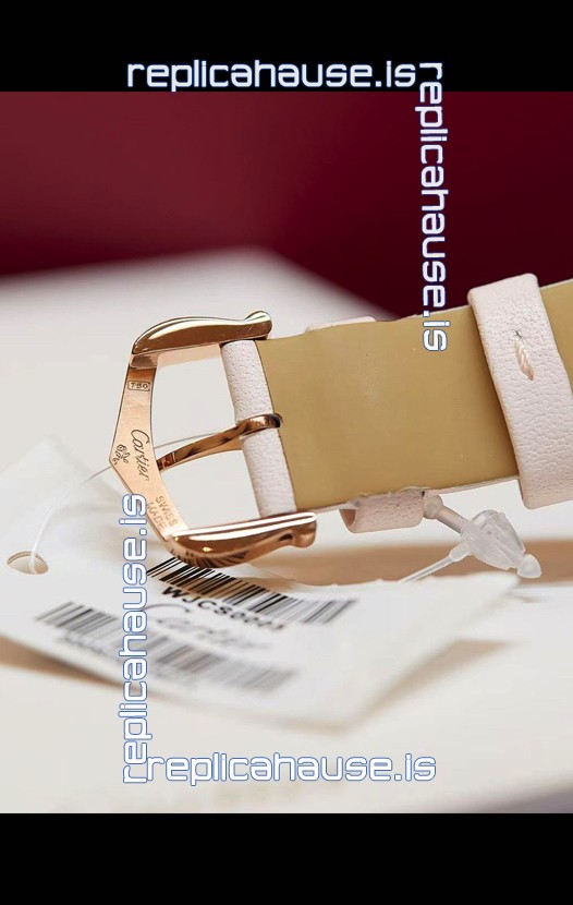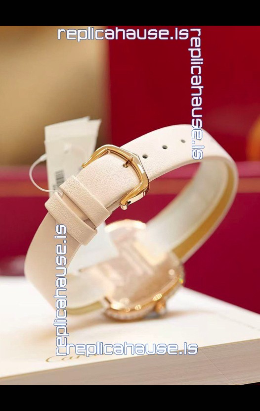 Coussin De Cartier Rose Gold Swiss Replica Watch White Strap