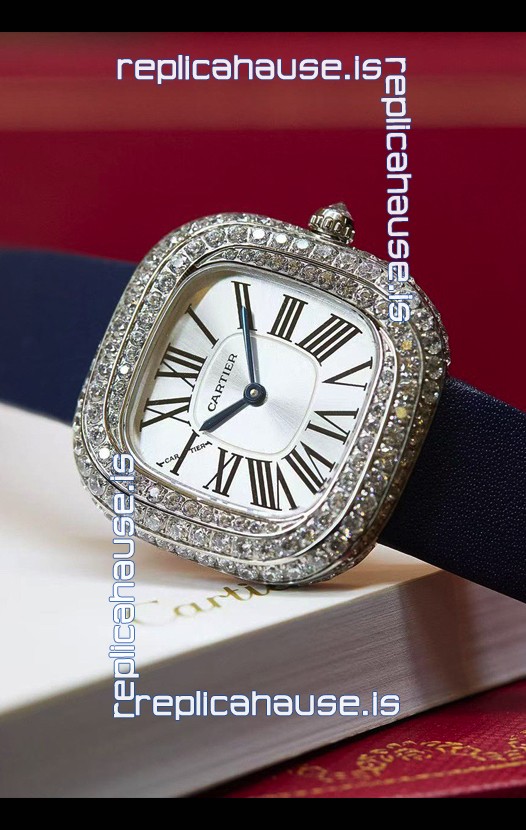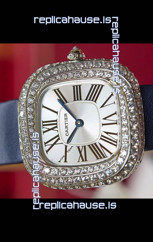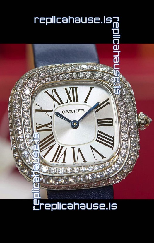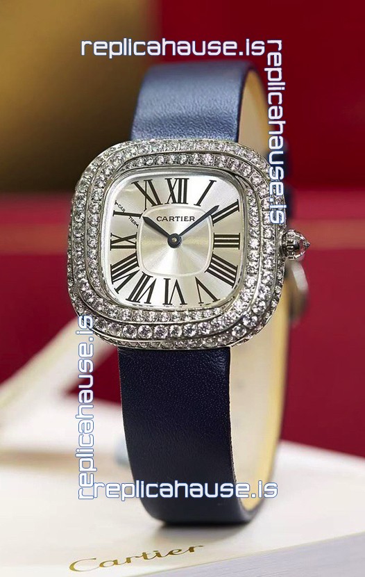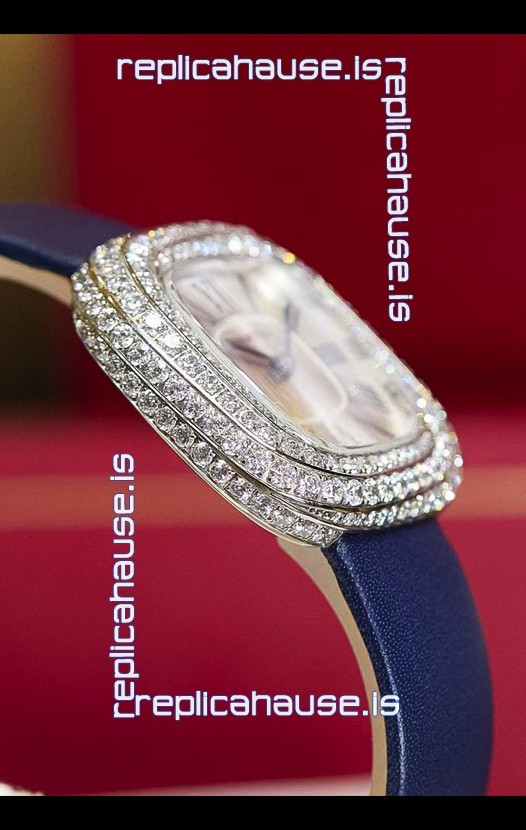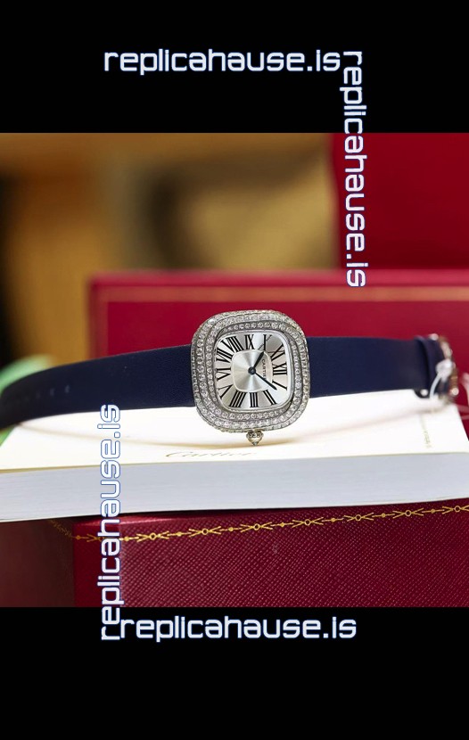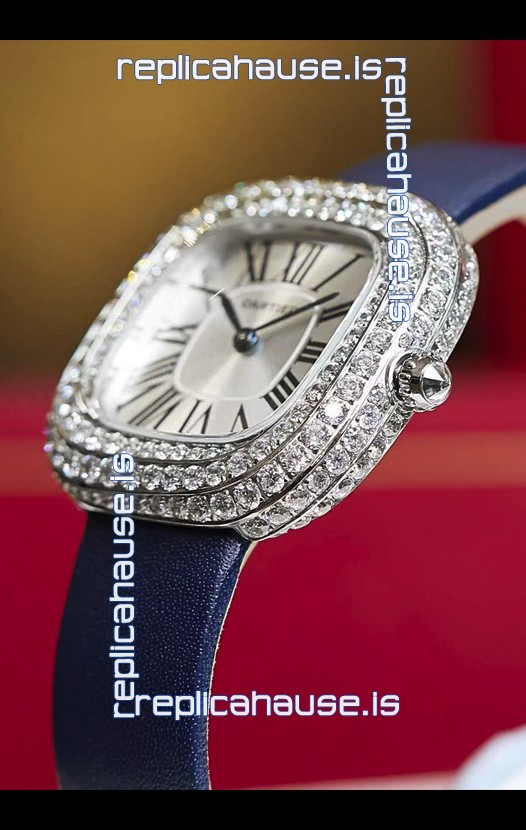 Coussin De Cartier Steel Watch Swiss Replica Watch Blue Strap