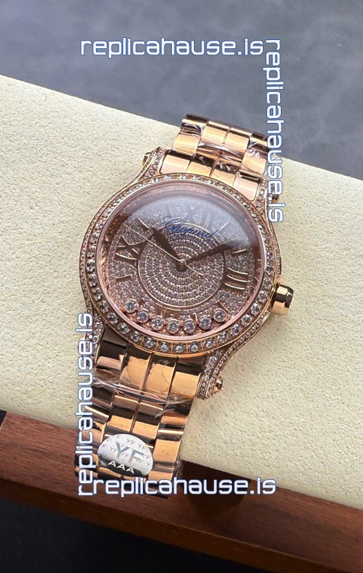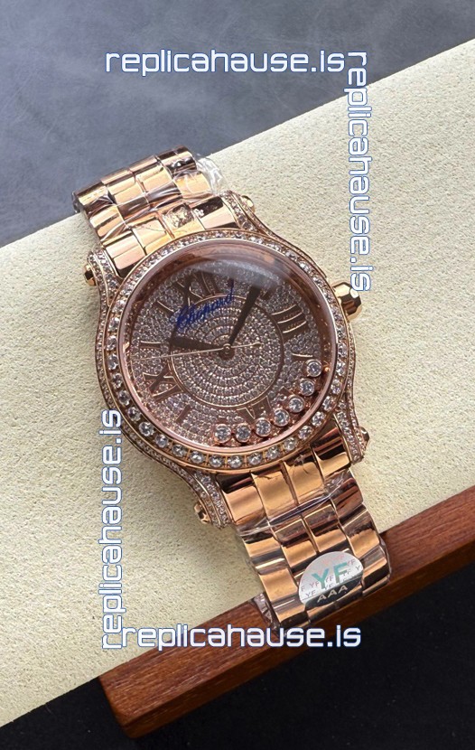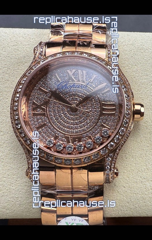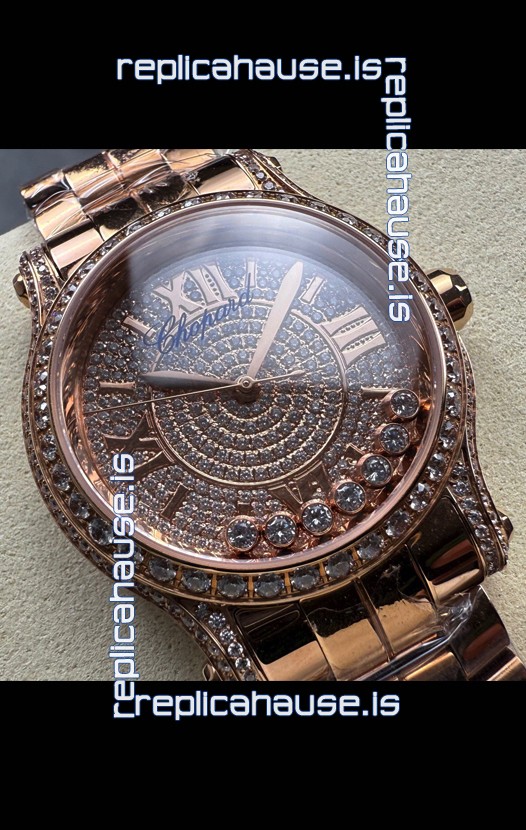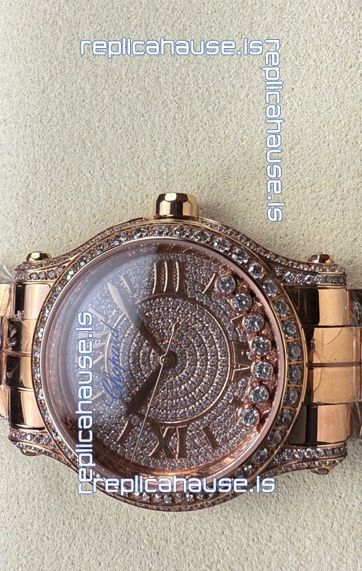 Chopard Happy Sport Super Clone Automatic Watch 36MM in Rose Gold Casing Mossanites Dial