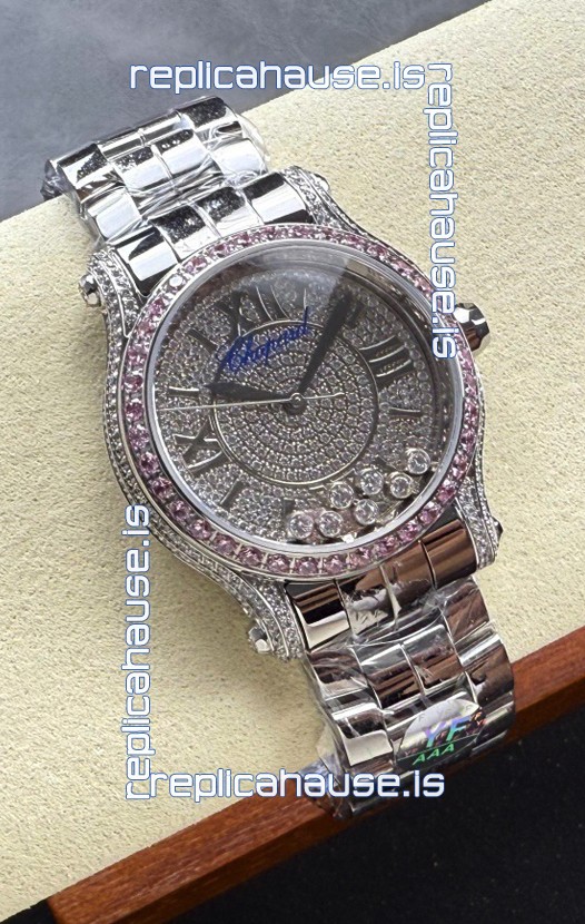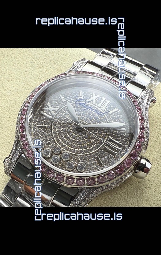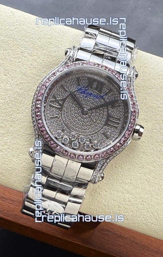 Chopard Happy Sport Super Clone Automatic Watch 36MM in Steel Casing Mossanites Dial