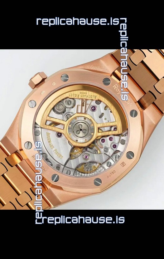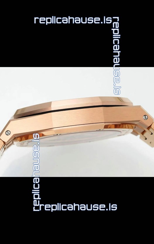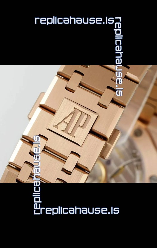 18K Rose Gold Plating on 904L Solid Stainless Steel Strap with smooth edges with AP Folding Clasp complete with AP Markings and Engravings
