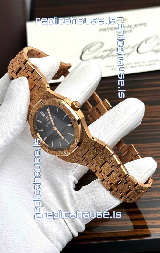 Rose Gold Plating on 904L Stainless Steel Strap completed with AP Markings and Engravings as per the originals and AP Folding Clasp