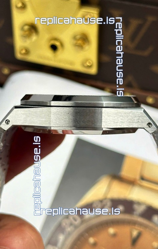 Frosted White Gold Plating on 904L Steel Case Complete with AP MArkings and Engravings.