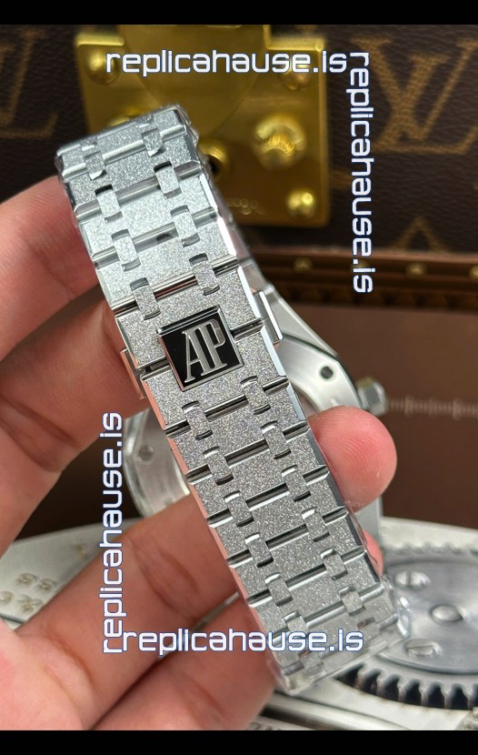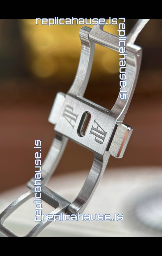 White Gold Plating on 904L Brushed Frosted Steel Casing with Audemars Piguet Markings and Engravings