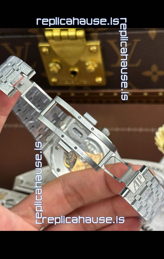 White Gold Plating 904L Steel Strap with Frosted Finishing exactly as per the originals with AP Folding Clasps as per the originals