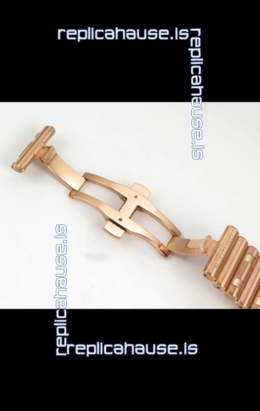 18K Rose Gold Plating on 904L Steel Strap linked with Pins as per the originals complete with Breitling Markings and Engravings as per the originals