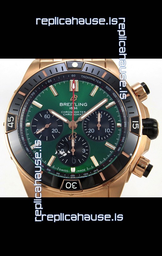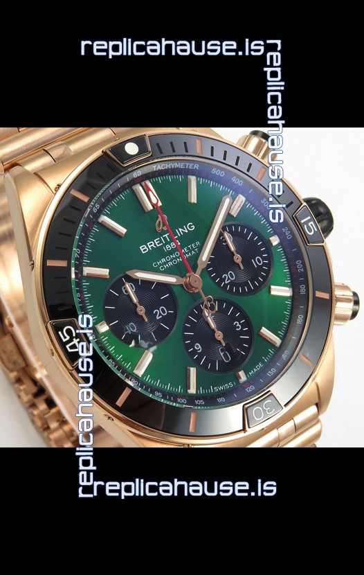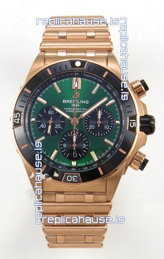 Breitling Chronomat Super Clone B01 42 Edition Swiss Rose Gold Casing Green Dial