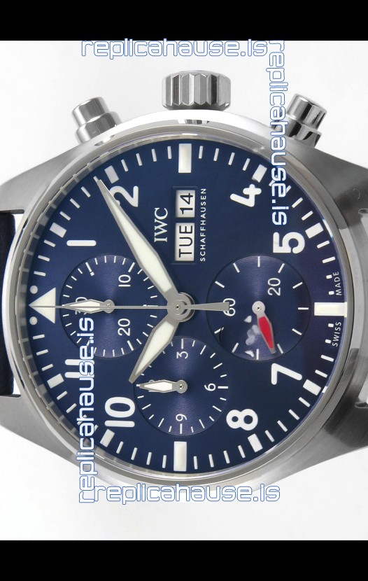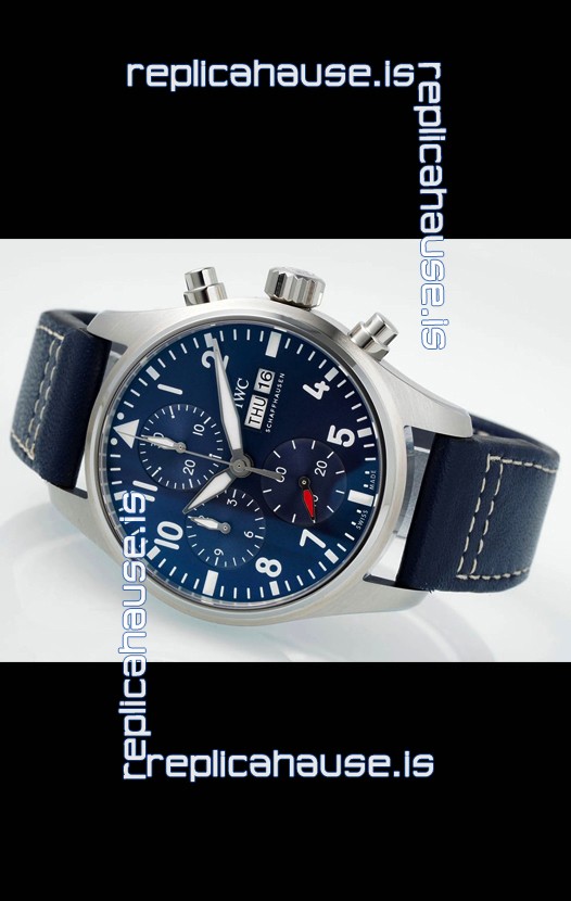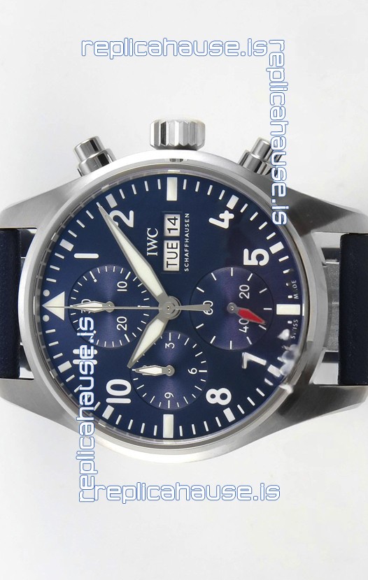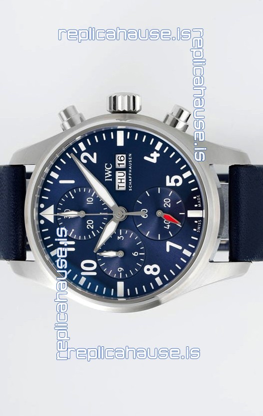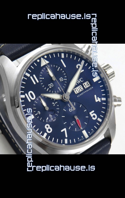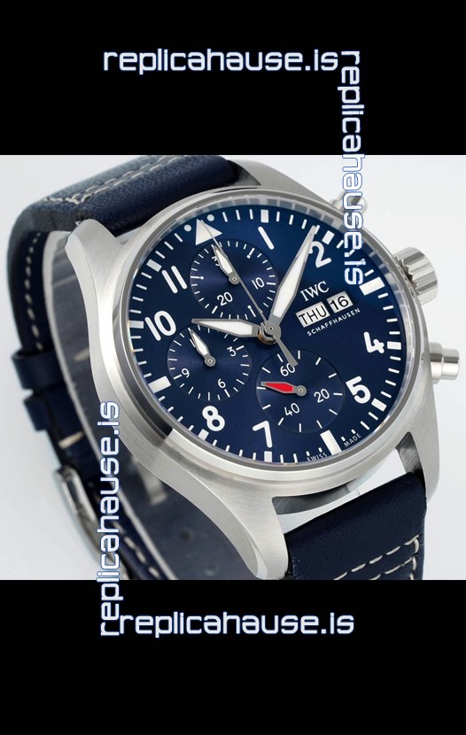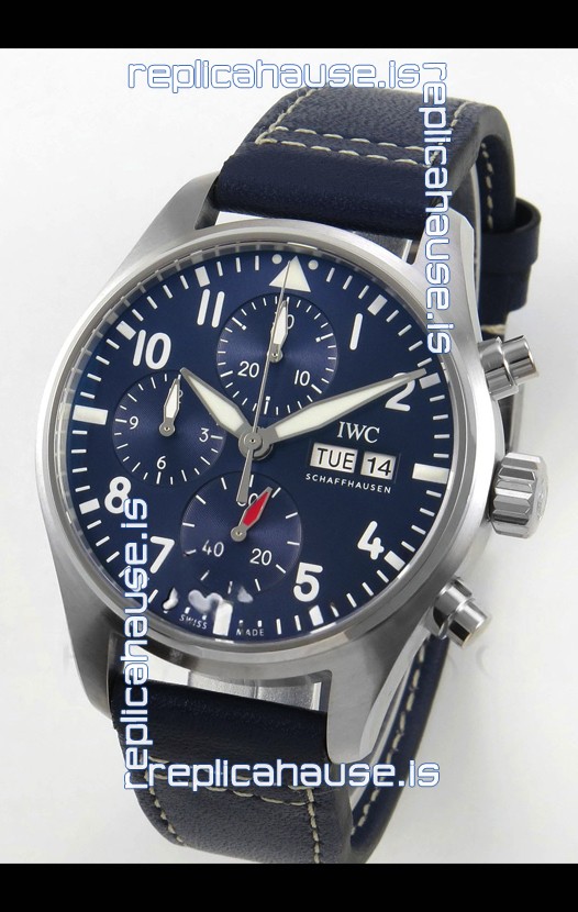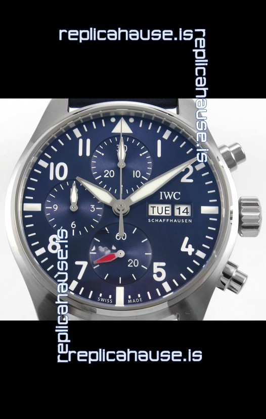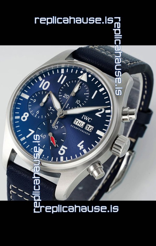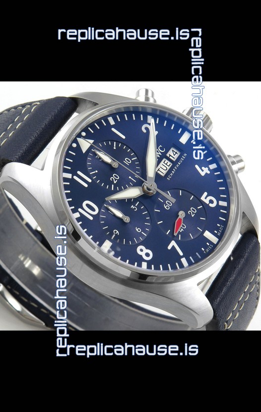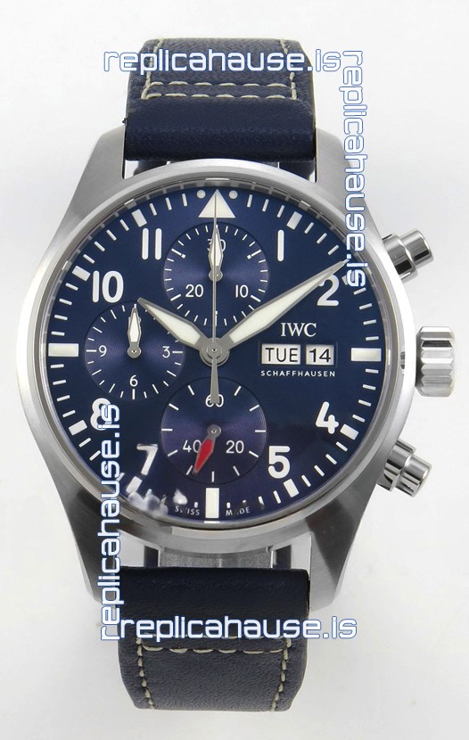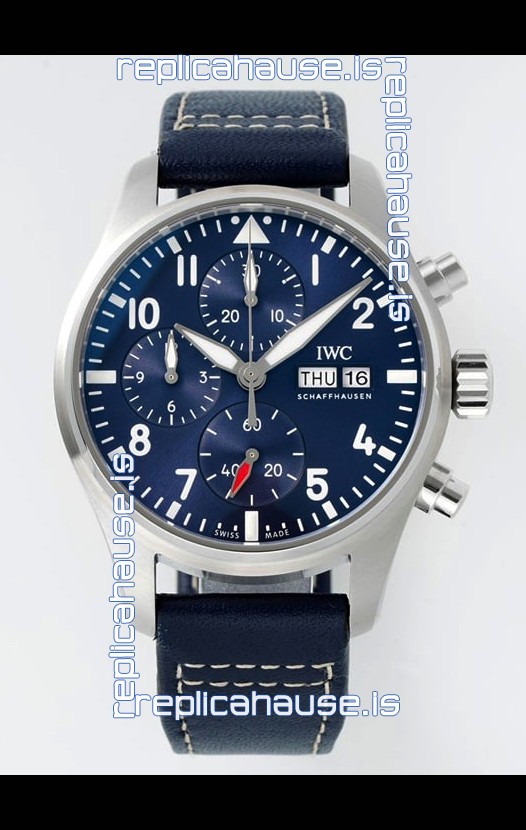 IWC Super Clone Pilot Chronograph Edition Blue Dial Leather Swiss Replica Watch