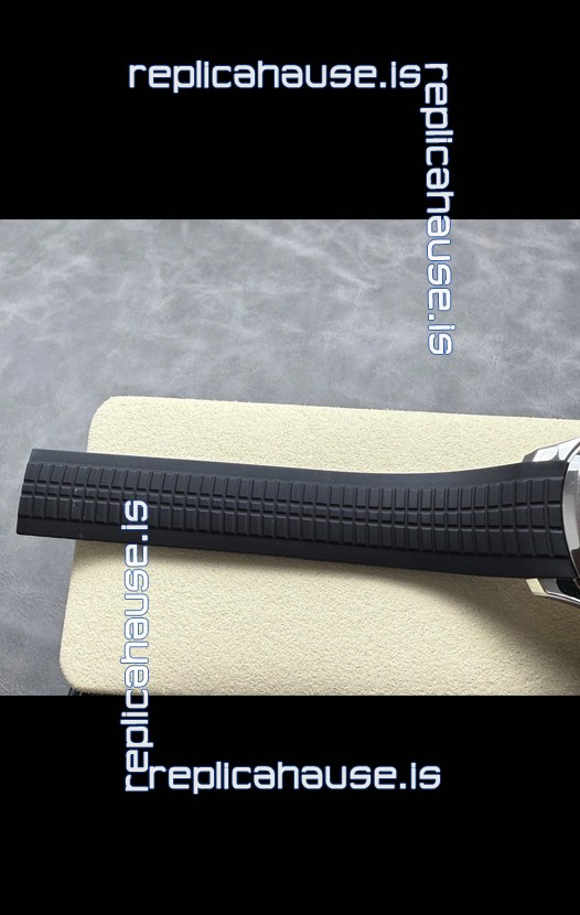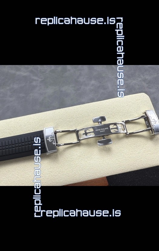 Curved Rubber Strap with Steel Folding Clasp complete with Patek Philippe Markings. A Highly Updated Clasps for this series with much more accurate markings/engravings.