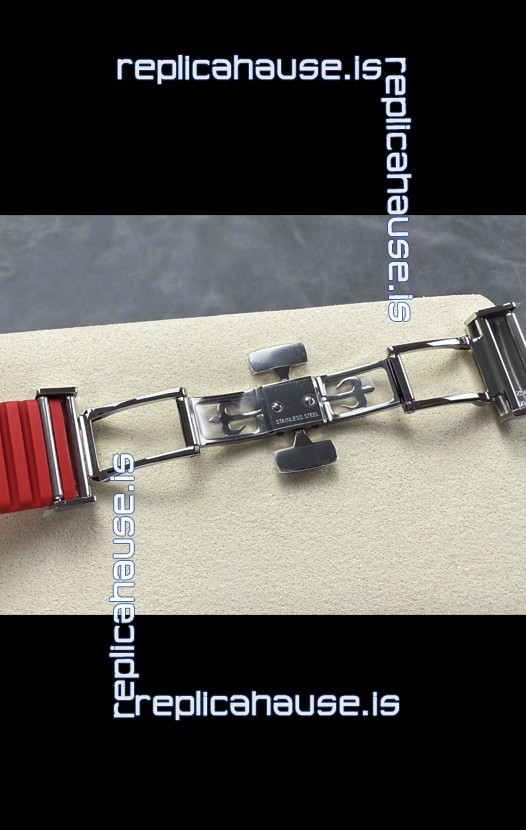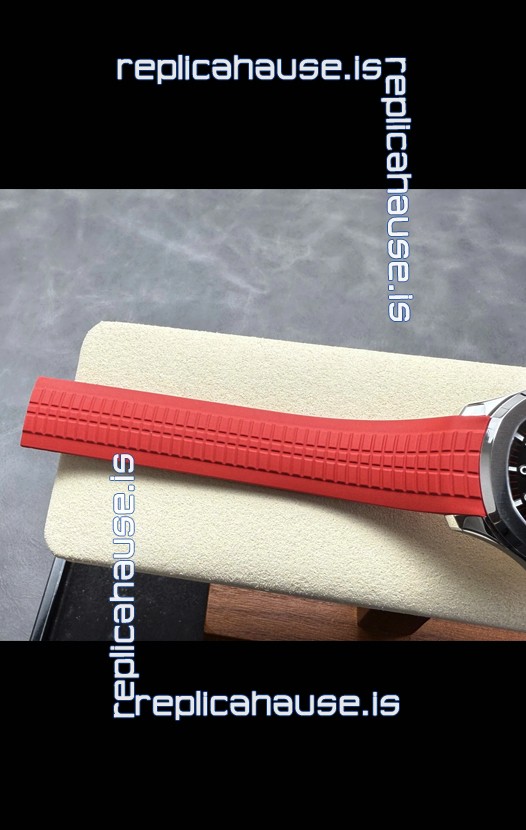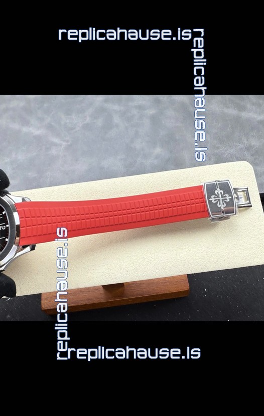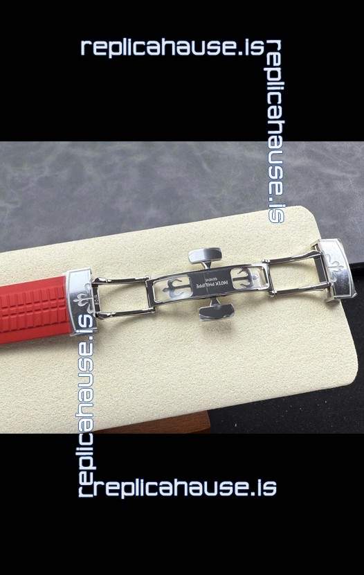 Curved Rubber Strap with Steel Folding Clasp complete with Patek Philippe Markings. A Highly Updated Clasps for this series with much more accurate markings/engravings.